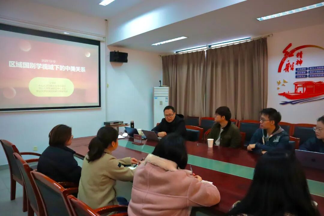 12月12日,我校第1093期博达论坛在东语学院融C401会议室顺利举行。本次论坛特邀中山大学国际关系学院教授、博士生导师张宇权担任主讲嘉宾,围绕《区域国别学视域下的中美关系》展开深入分享。讲座由我院学术副院长孙霁主持,吸引了学院青年教师及学生积极参与。