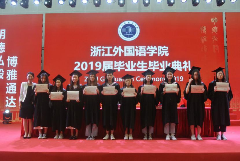 6月18日上午,我院在行健馆举行2019届毕业生学位授予仪式。学院党总支书记王永青、副院长金海救、副院长曹笑笑、日语专业夏菊芬教授、土耳其语专业沈志兴教授、党总支副书记屠立达、各语系主任、任课教师、辅导员与19届全体139名毕业生参与了仪式。仪式由屠立达老师主持。