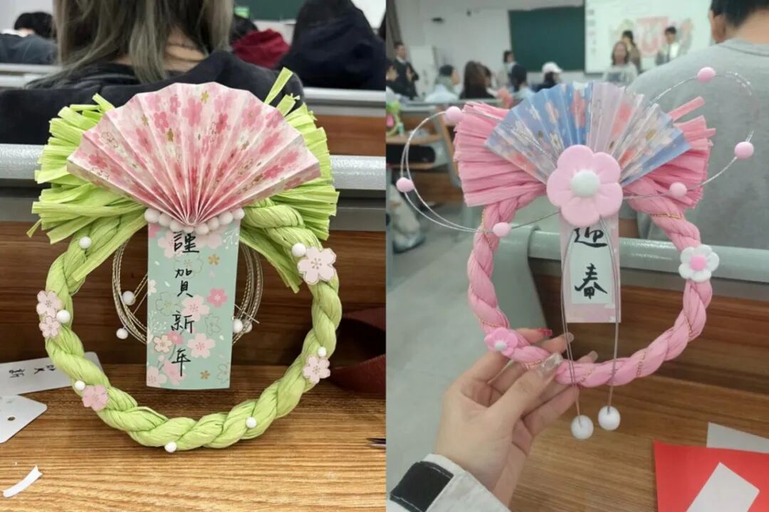 10月22日上午,2023级同学在外教老师的指导下,沉浸于“日本新年缔绳”的制作体验中。活动不仅是一次手工实践,更是一座从“知道”到“理解”的文化桥梁。同学们在编结与造型的反复琢磨中,亲手触摸日本文化中对洁净、秩序与美好开端的追求,将书本上的抽象描述转化为具体而深刻的亲身感悟。
