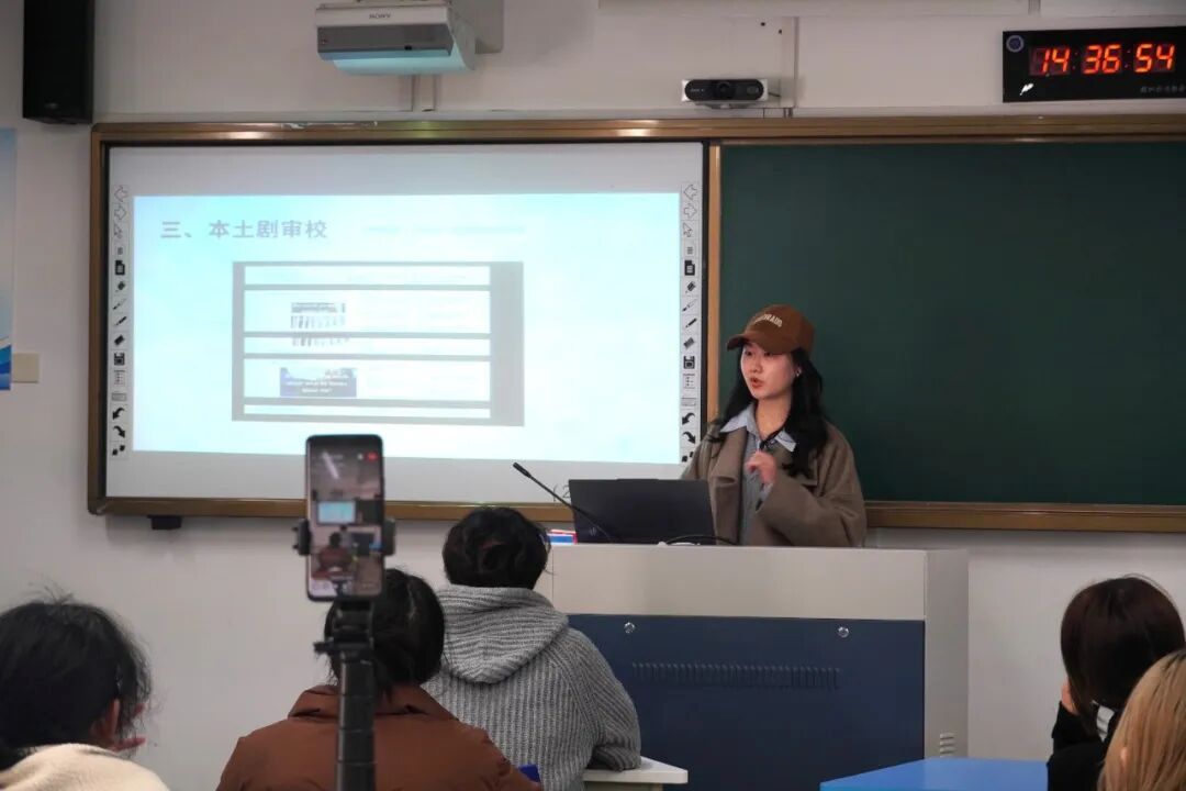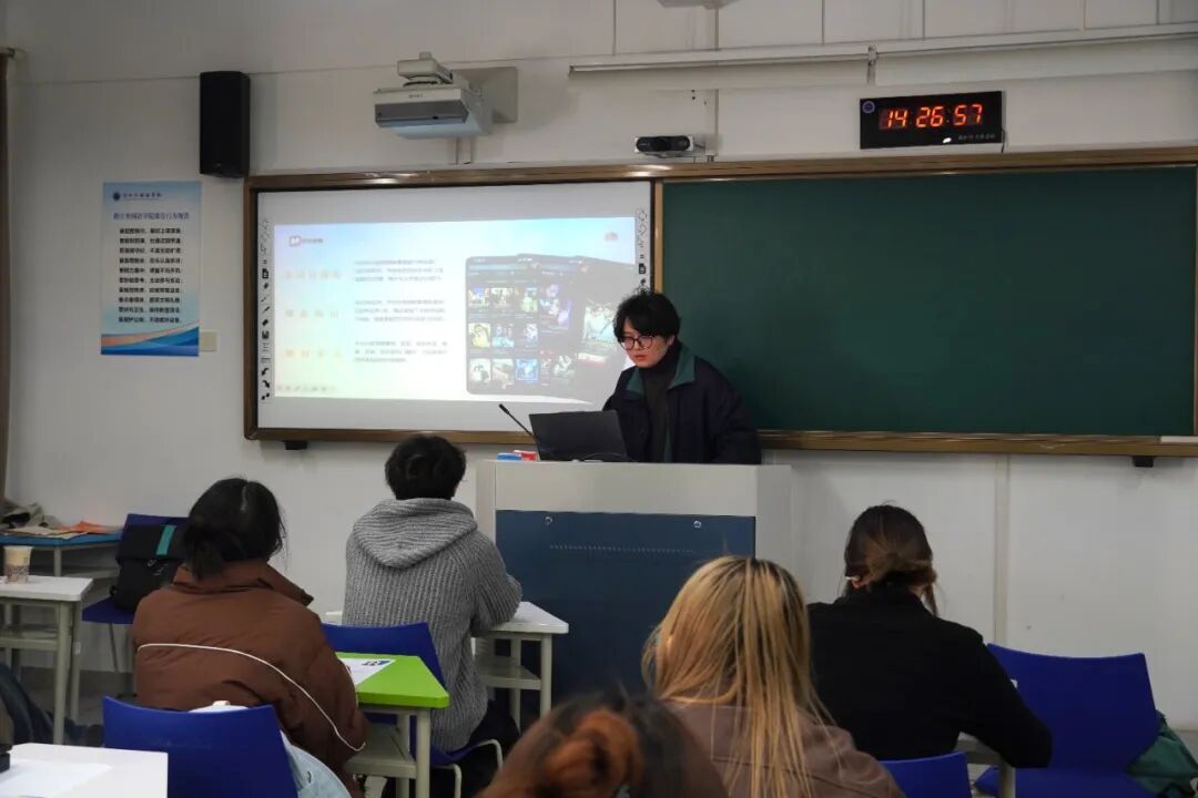 随后,陈靖琬与宋美萱聚焦企业用人需求,为同学们详细解读核心招聘岗位信息。二人打破大家对语言类岗位的刻板印象,逐一介绍翻译配音、配音监制、拼录、商务专员等岗位的具体工作内容,着重强调各岗位对语言应用能力、内容判断能力、跨部门协作能力的复合型要求,让同学们对岗位任职标准有了清晰认知。
