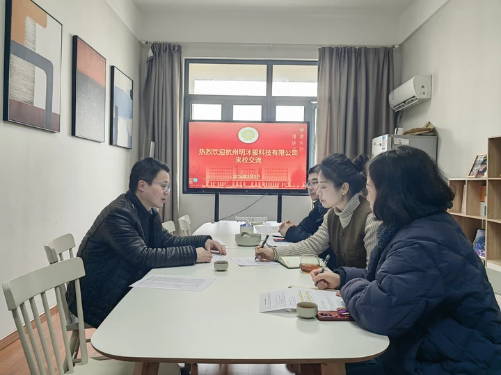3月5日,杭州明沐骏科技有限公司总经理刘发骏一行到访我院交流洽谈,学院党委书记毕莹、党委副书记宋洋,学工办主管杜茜、辅导员蔡胜参与座谈。