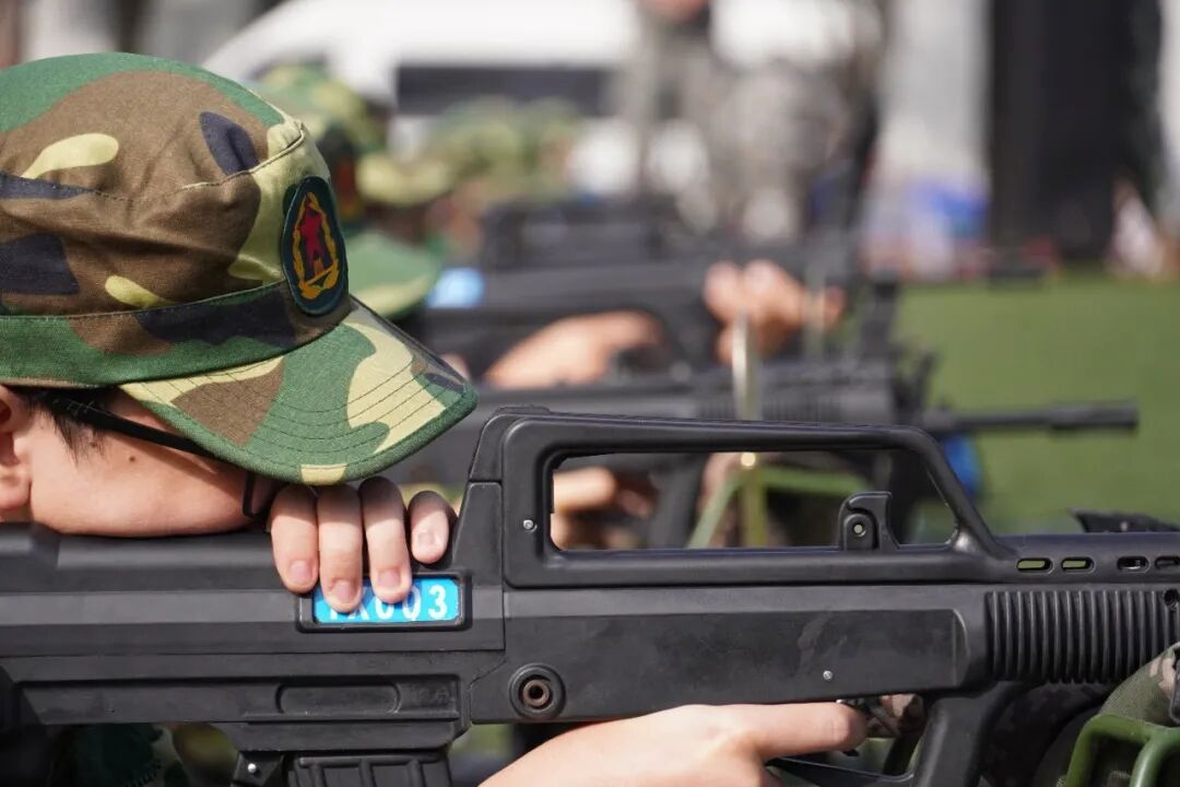 “一、二、三、四——”铿锵有力的口号声划破清晨的宁静。训练场上,一个个方阵整齐排列,同学们目光如炬,身姿如松。站军姿时纹丝不动,任凭汗水顺着额角滑落;踢正步时步伐铿锵,脚掌落地声声坚实;摆臂练习整齐划一,每一次挥动都带着破风的气势。到了射击打靶环节,学员们更是精神抖擞,双手紧握枪身、双眼紧盯靶心,随着教官“射击”指令落下,枪声清脆响亮,每一次扣动扳机都凝聚着专注与力量,尽显少年朝气。