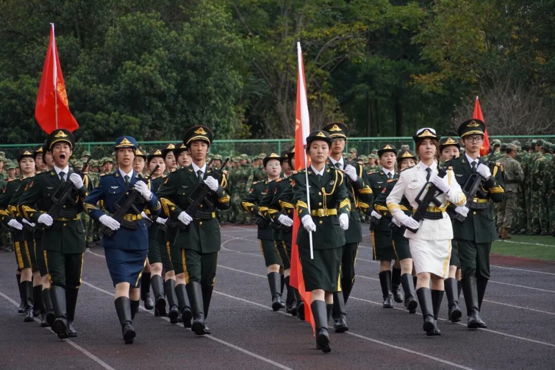 “一、二、三、四!”口号嘹亮,声震寰宇。由东语学子组成的两个连队,迈着整齐划一、铿锵有力的步伐,意气风发地走过主席台。他们目光如炬,姿态挺拔,每一个动作都凝聚着连日苦练的汗水,每一次摆臂都彰显着青春的锐气与力量。这支队伍,不仅走出了军人的飒爽英姿,更走出了未来“东方文化使者”的自信与坚定。
