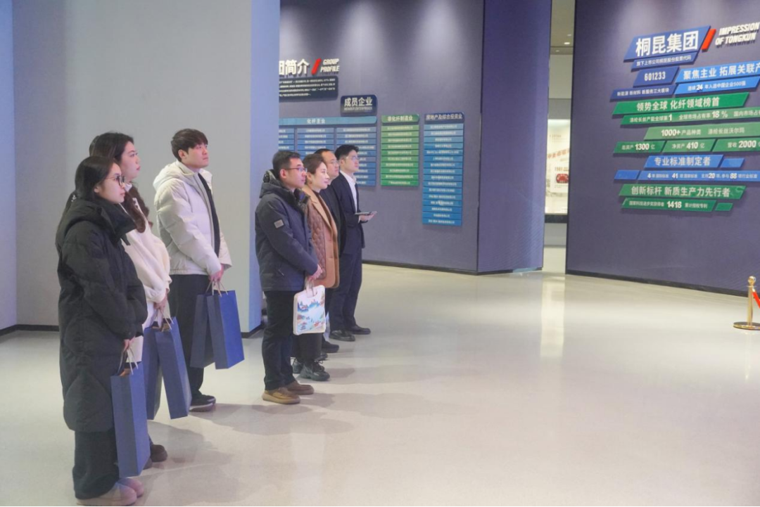 汪一栋带领我院师生参观了公司“印象桐昆”展厅,通过详实的文字史料、动态的影像演示、丰富的产品陈列及专业讲解,全面了解了集团从初创到壮大的发展历程,深入感受了集团党建特色品牌建设成果。