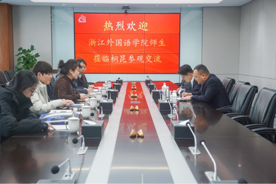 为深入推进“优企引才”定向访企拓岗促就业专项行动,进一步拓宽毕业生实习就业渠道,实现校企人才精准对接与资源优势互补,1月29日,我院组织师生代表团赴桐昆控股集团有限公司开展调研交流。我院党委书记毕莹、党委副书记宋洋、学术副院长孙霁、朝鲜语系主任李博文、辅导员蔡胜以及阿拉伯语、朝鲜语专业学生代表等共同参与,桐昆集团人力资源部负责人汪一栋、校园招聘负责人田纪龙热情接待并全程陪同。