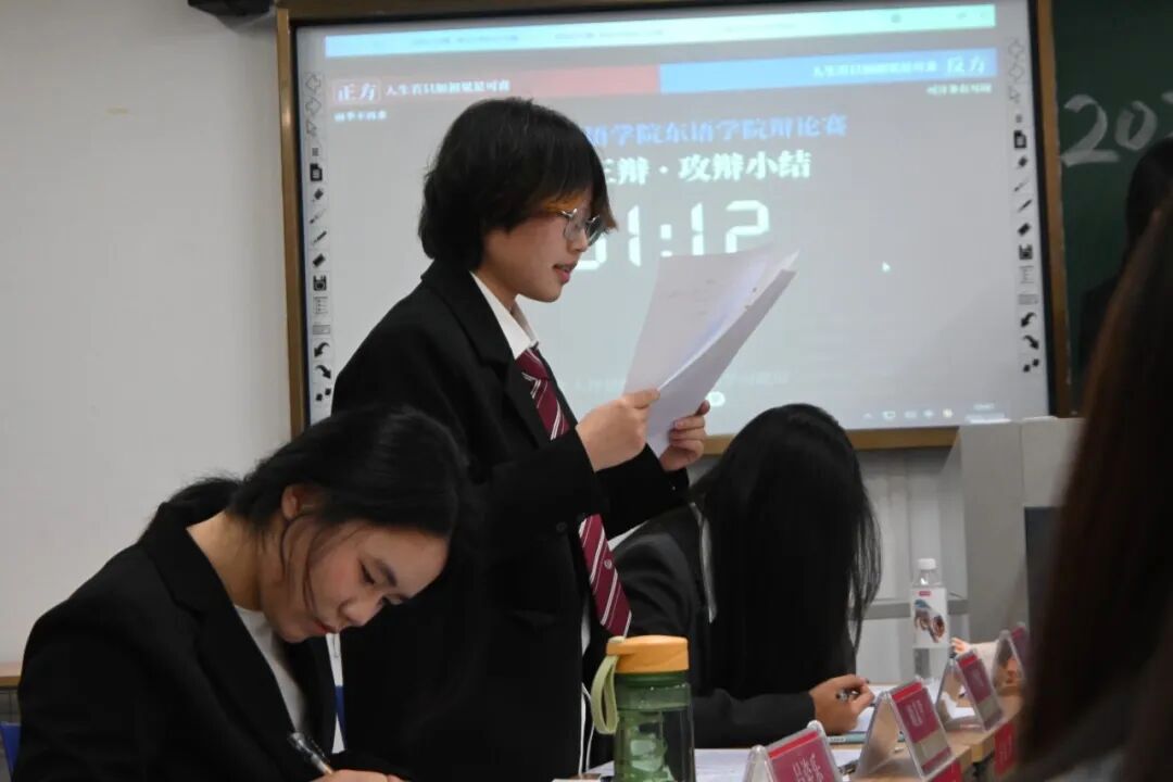 思辨碰撞火花,语言丈量世界。正反双方围绕辩题展开激烈交锋,从开篇立论、攻辩驳论到总结陈词,层层推进、环环相扣,充分展现出东语学子缜密的逻辑思维与敏捷的临场反应。犀利的提问掷地有声,从容的应答条理清晰,选手们以语言为刃、以思想为炬,生动诠释观点立场,为现场观众呈现了一场精彩纷呈的语言盛宴与思想交锋,尽显东语学子昂扬向上的青春风采。