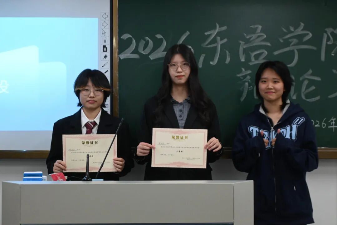比赛结束后,评委们为辩手们的精彩表现现场打分,并作出专业而精辟的点评。根据评委打分结果,最终奖项揭晓:吕姿乐同学荣获一等奖,王梦瑶、王舒涵同学荣获二等奖,胡嘉尹、程柯语同学荣获三等奖。
